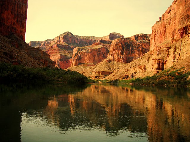 The canyon nicely reflects the water as we paddle down the still waters above Nankoweap.